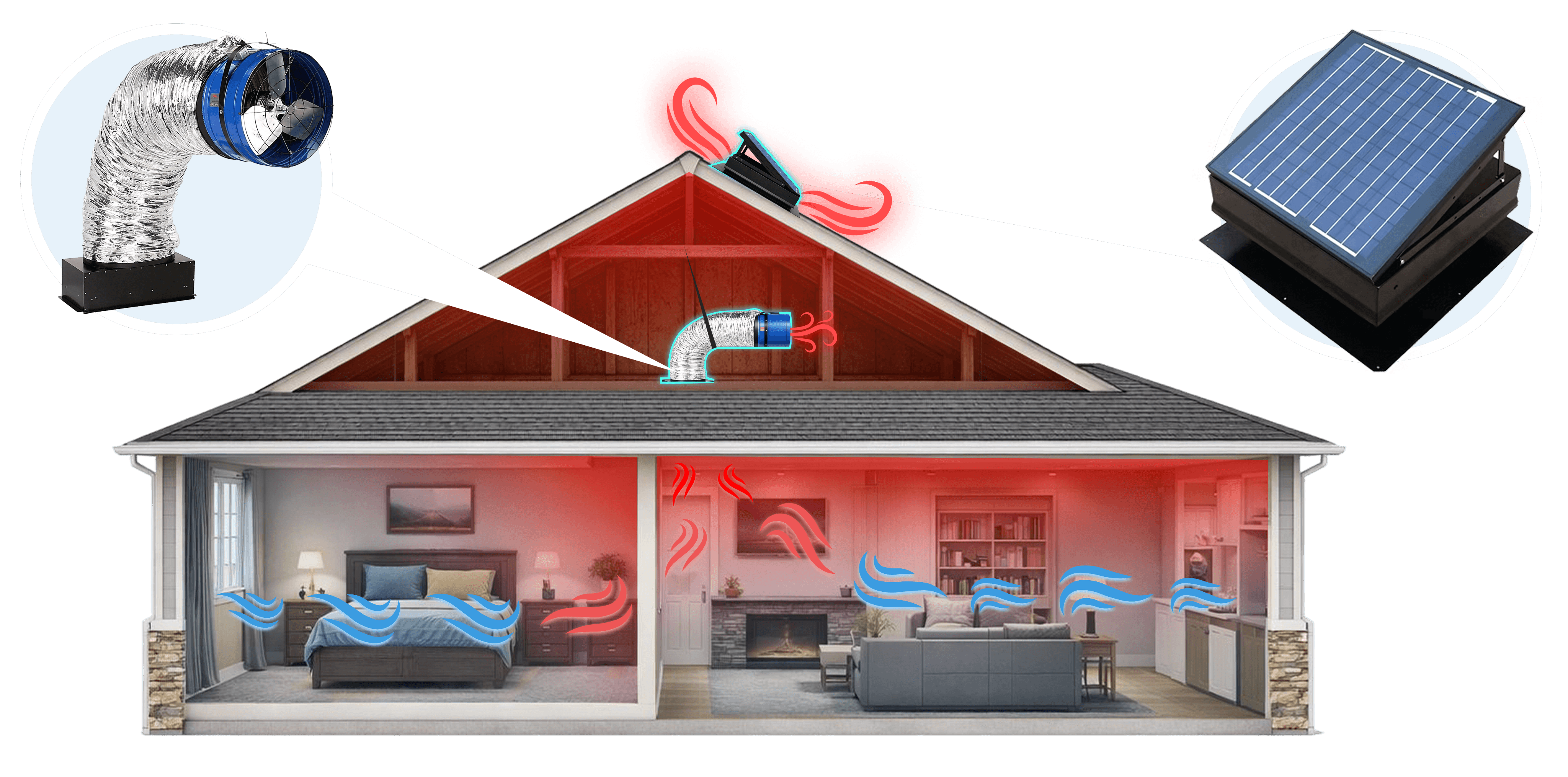 Removes trapped attic heat at the source