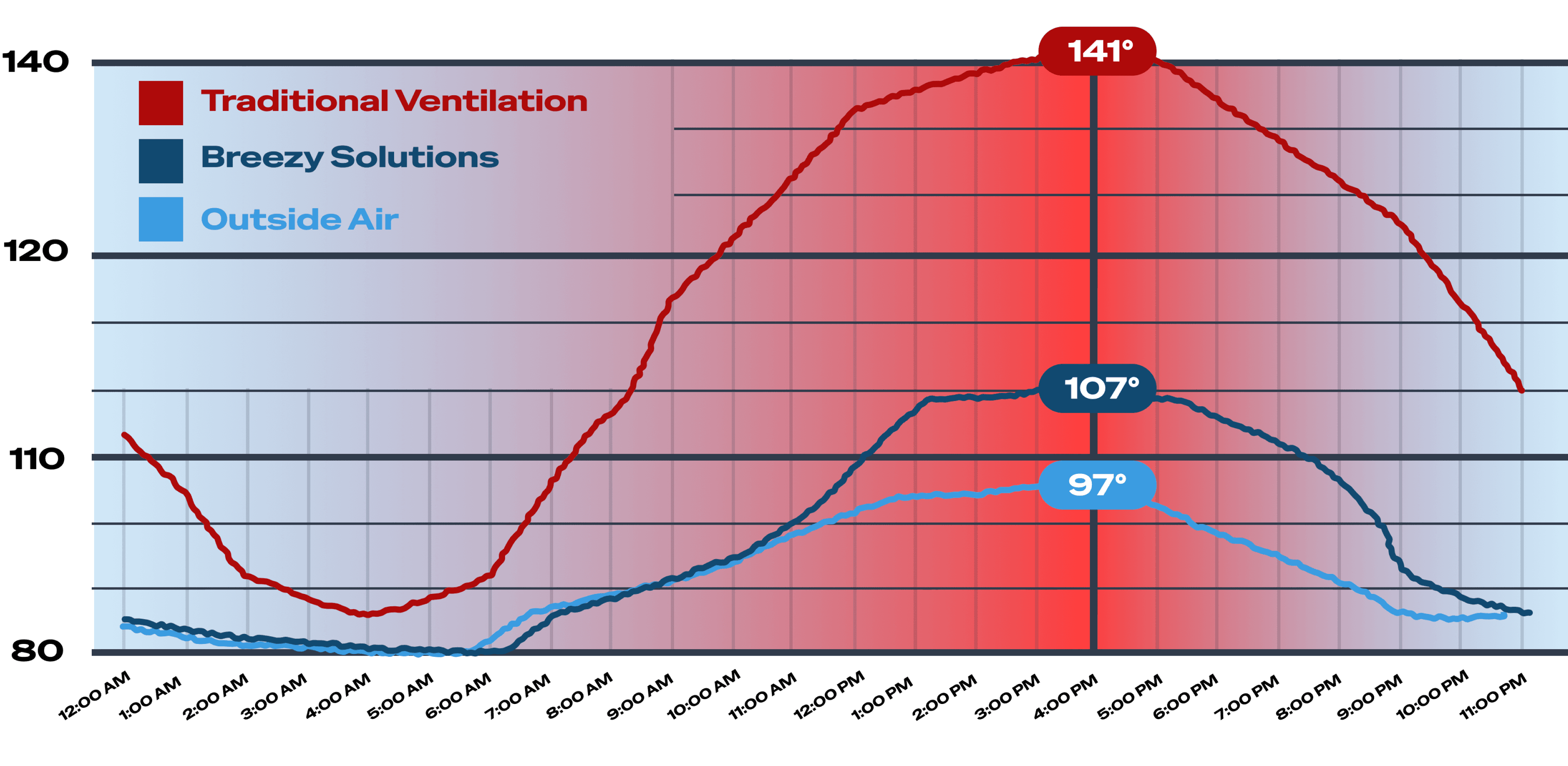 Flushes hot, stale air out in minutes